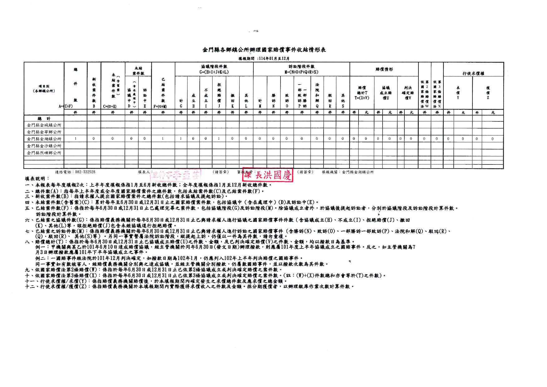 金門縣各鄉鎮公所辦理國家賠償事件收結情形表