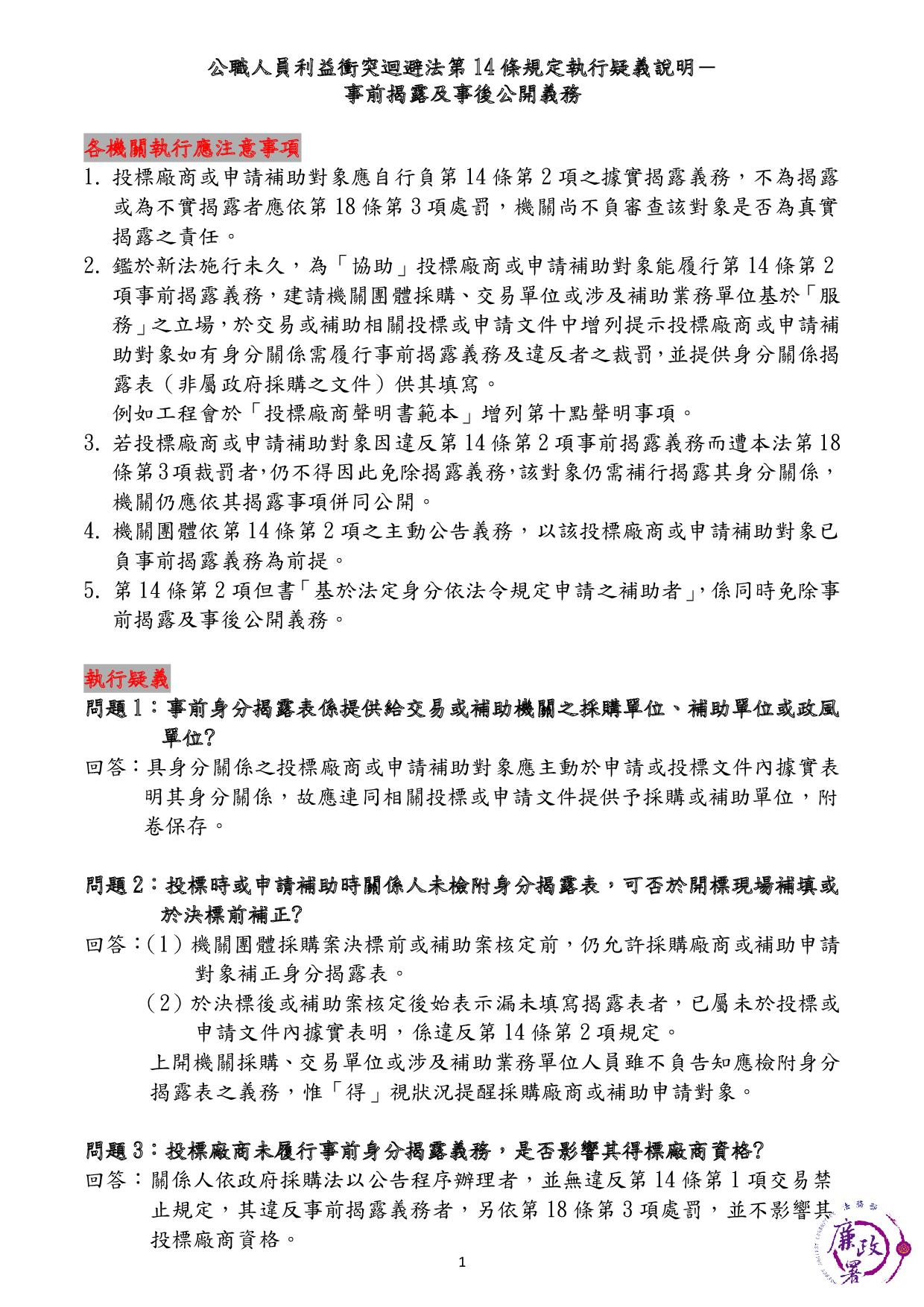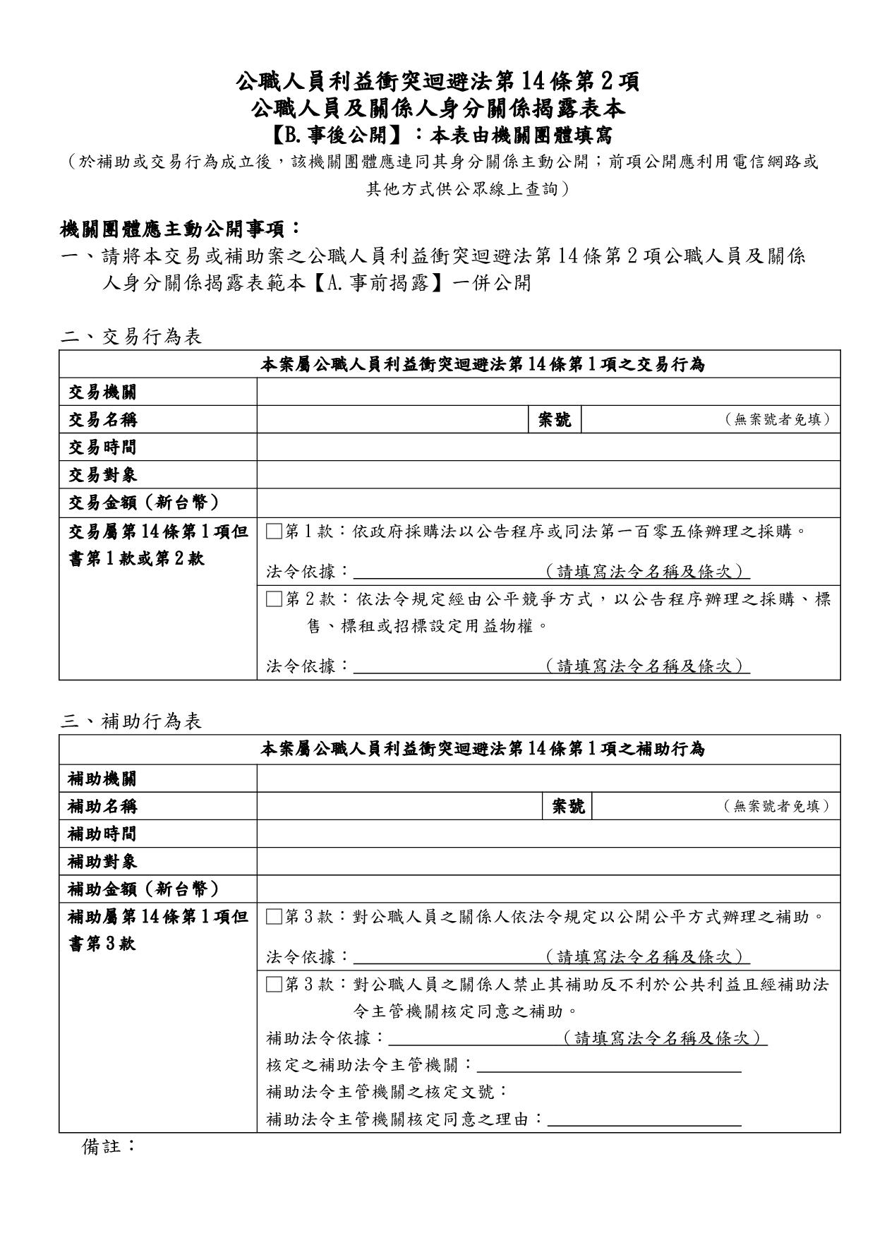 (一)依第五點規定訂定之作業規範應於網際網路公開。