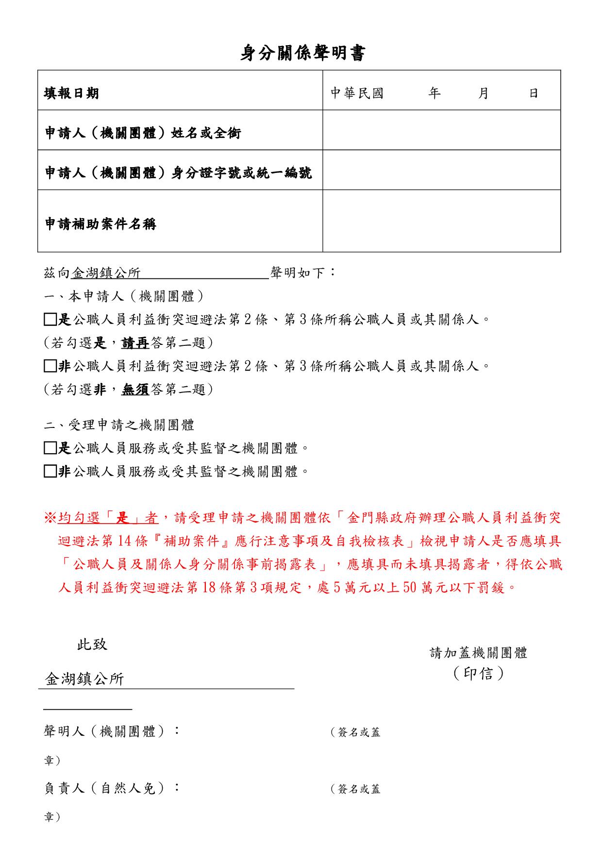 (四)本所及各基金對於民間團體及個人之補(捐)助,應予登記列管,並按季將補(捐)助情形,依附表二格式填送本所(主計室)彙報金門縣政府,並於本所網站中公布。